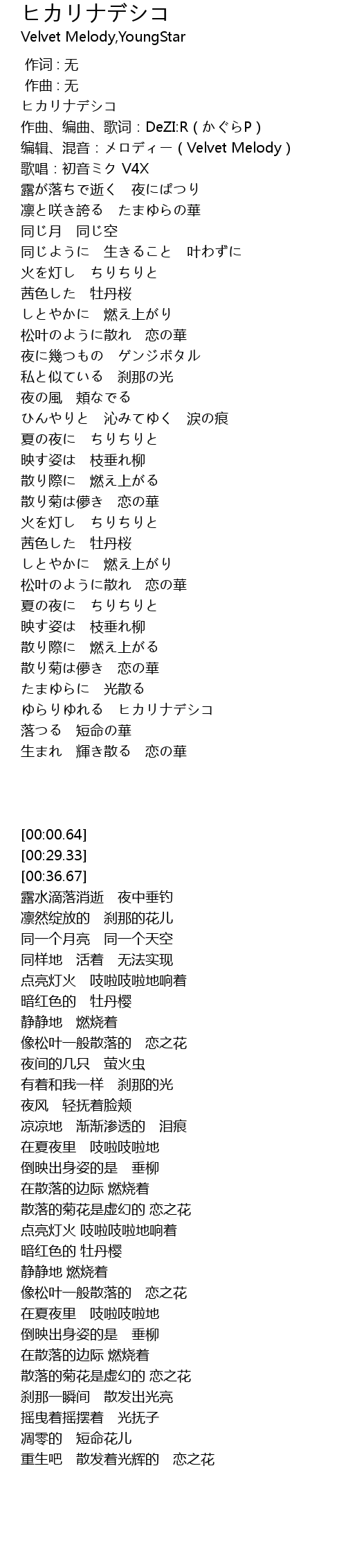 | [00:36.67] | 歌唱:初音ミク V4X |