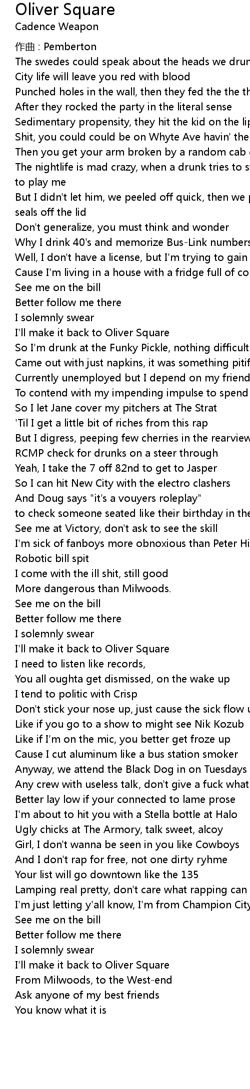 | Shit, you could could be on Whyte Ave havin' the time of your life | |
