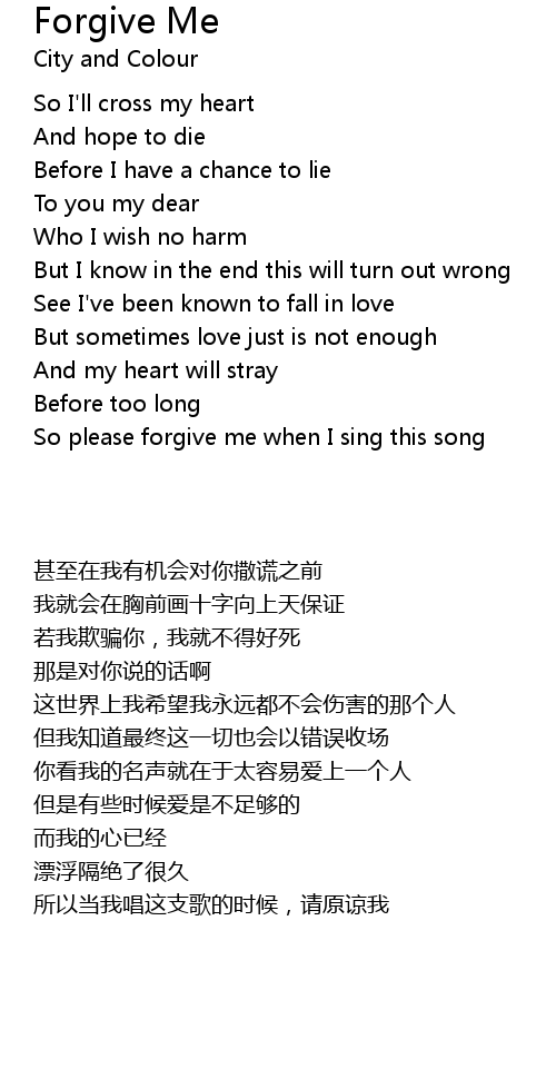| [01:28.28] | So please forgive me when I sing this song |