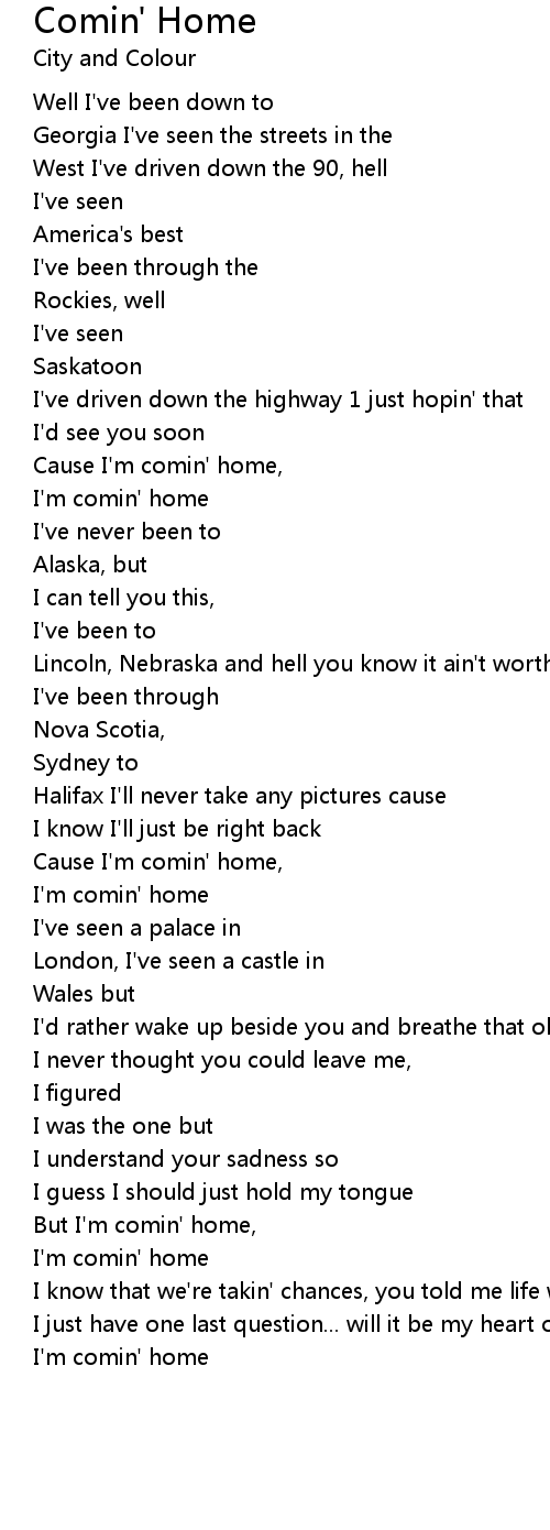 Cause I'm comin' home, |