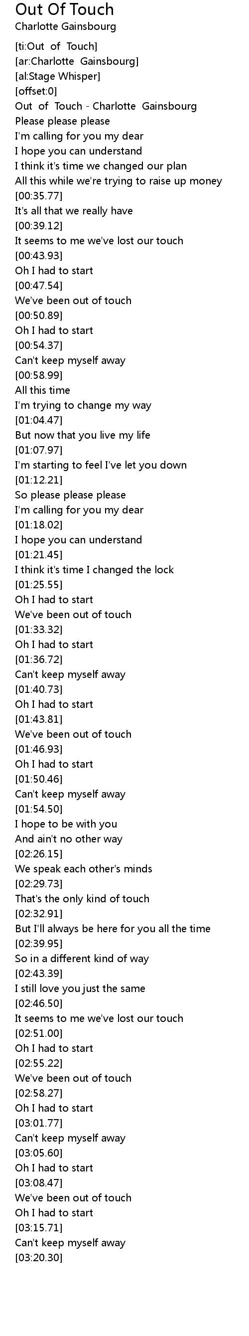 [ti:Out of Touch] |