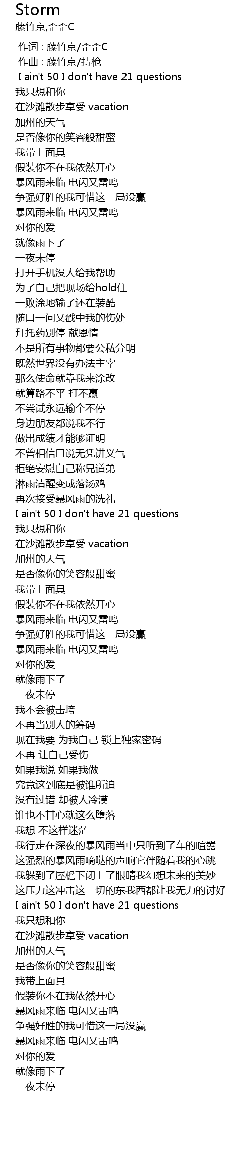 | [01:11.42] | I ain't 50 I don't have 21 questions |