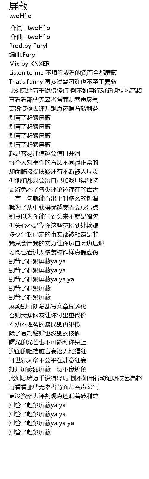 | [00:00.000] | 作词 : twoHflo |