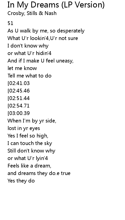 | [03:11.33][02:51.44][01:39.95] | In my dreams |