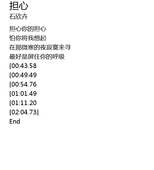 | [01:12.65][00:43.58] | 哦~担心 我的担心 |