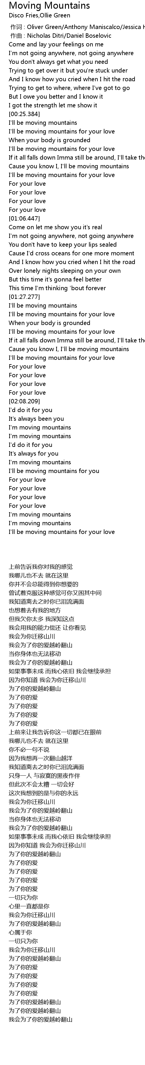 | [00:33.238] | I' ll be moving mountains for your love |