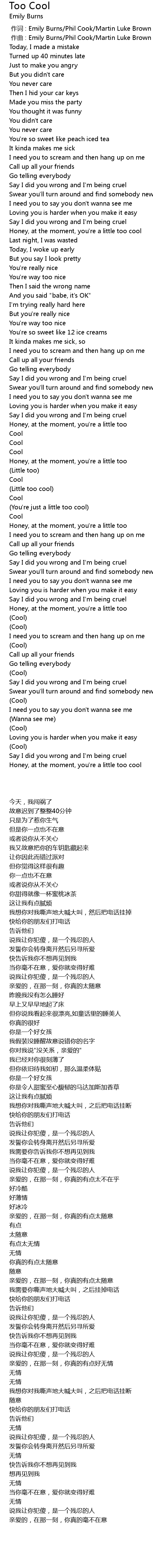 | 歌曲 | Too Cool |