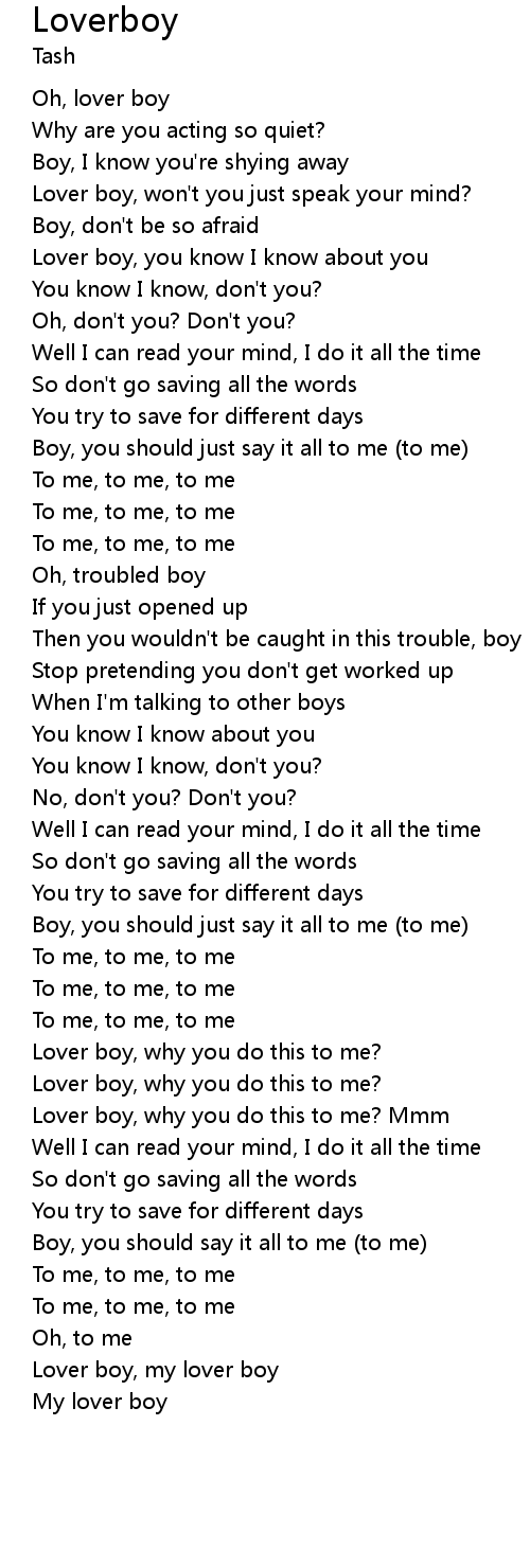 | [02:16.588] | Lover boy, why you do this to me? Mmm |