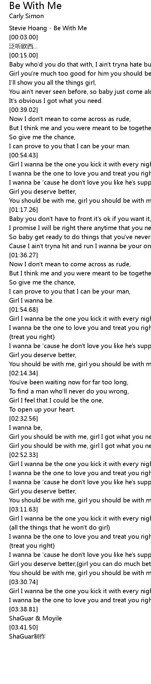 | [01:13.48] | You should be with me, girl you should be with me. |