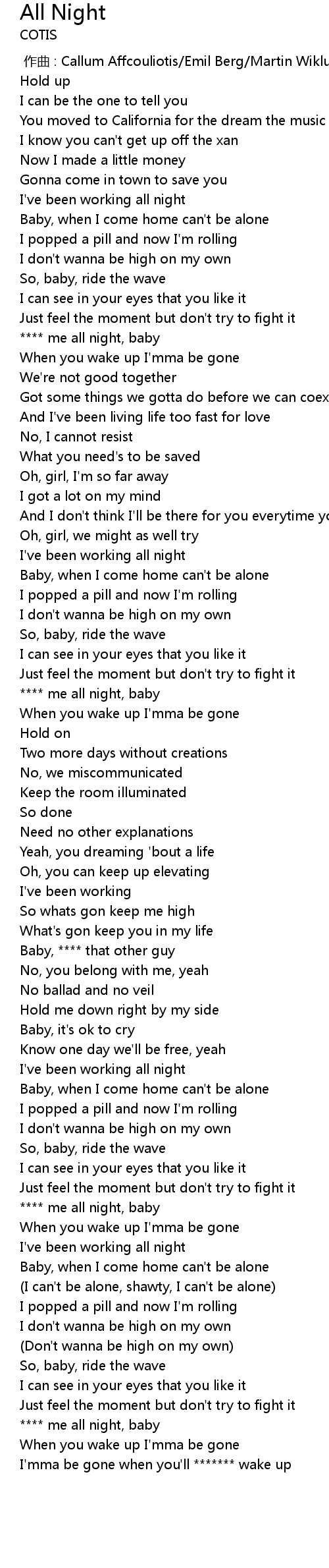 | [00:43.84] | **** me all night, baby |