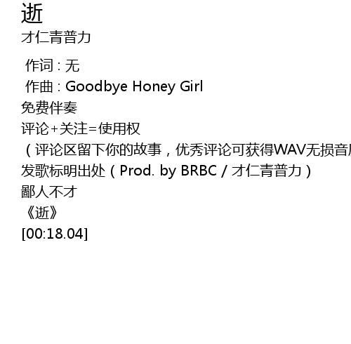 | [00:06.83] | 发歌标明出处(Prod. by BRBC / 才仁青普力) |