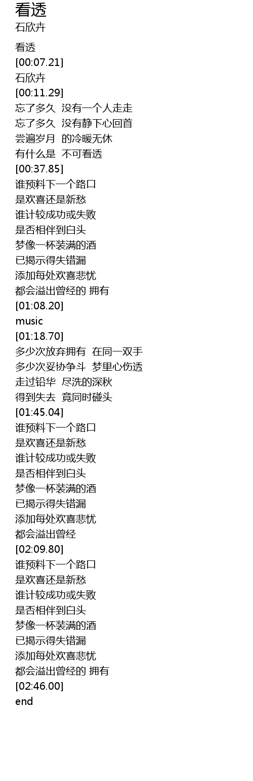 | [00:56.75] | 添加每处欢喜悲忧 |