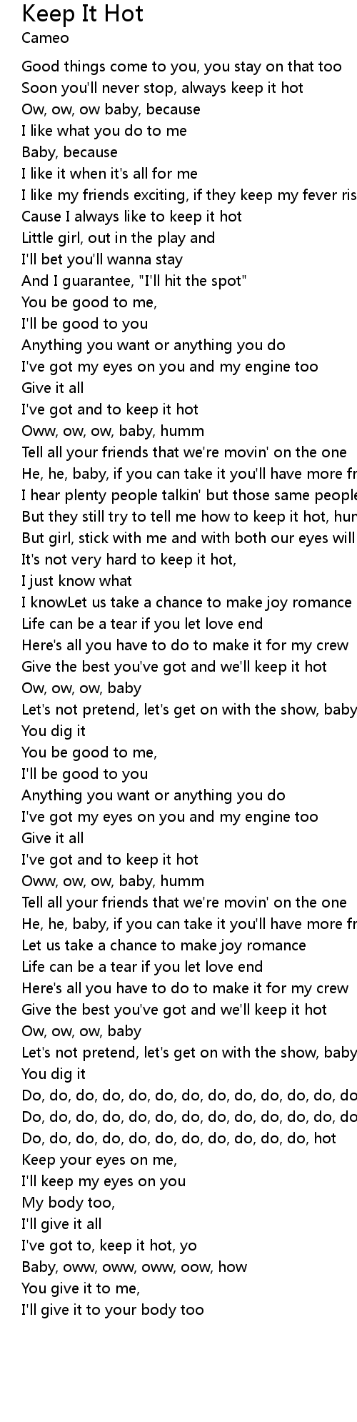 | Cause I always like to keep it hot | |