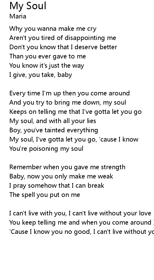 | And you try to bring me down, my soul | |