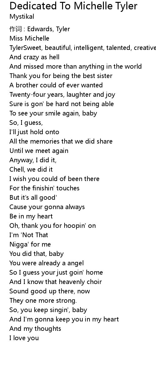 | 歌曲 | Dedicated To Michelle Tyler |