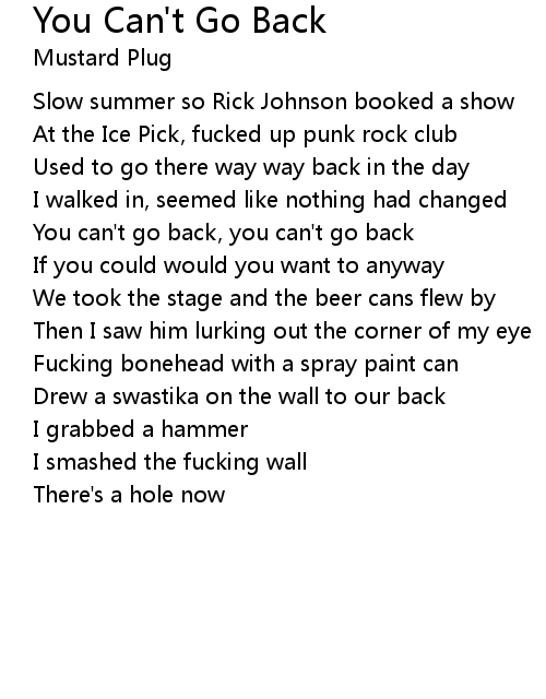 | You can't go back, you can't go back | |