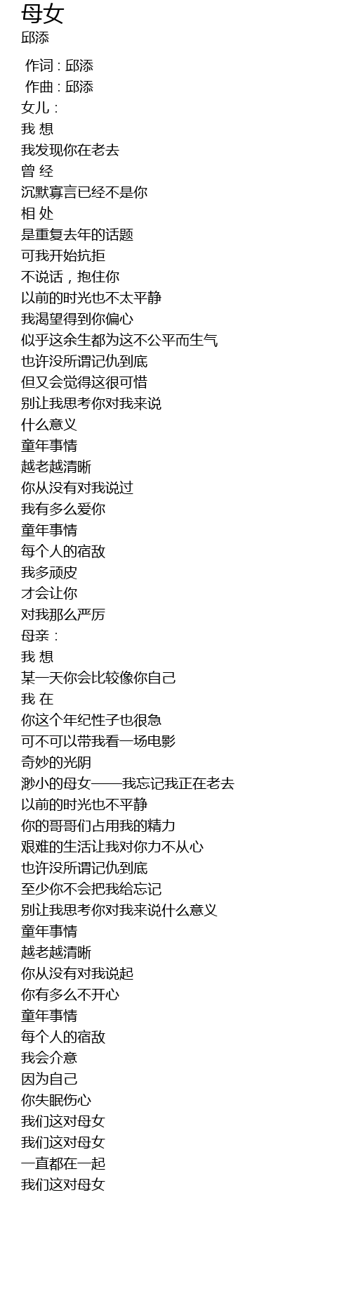 | 歌曲 | 母女 |