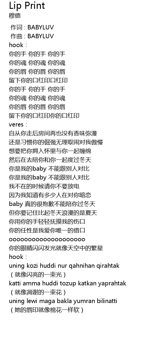 | [00:01.000] | zuò qǔ : BABYLUV |