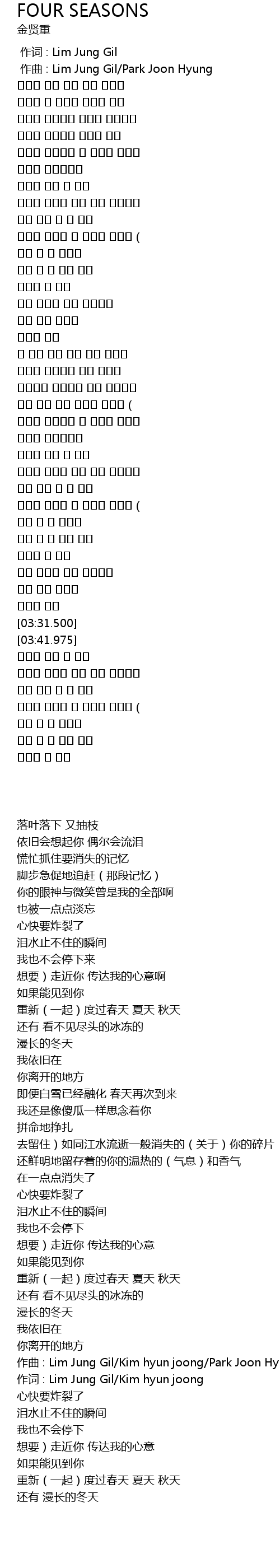 | [03:41.975] | 作词 : Lim Jung Gil/Kim hyun joong |