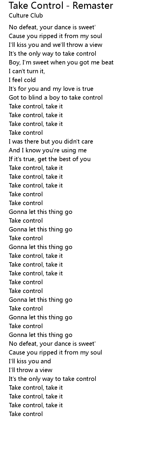 Take Control - Remaster 歌词