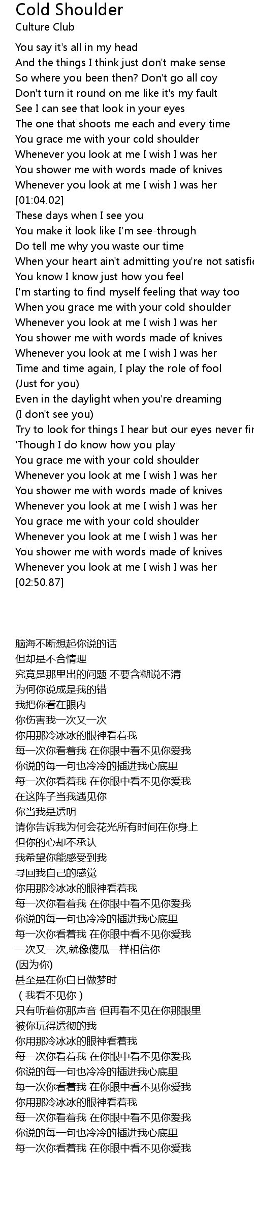 You grace me with your cold shoulder |