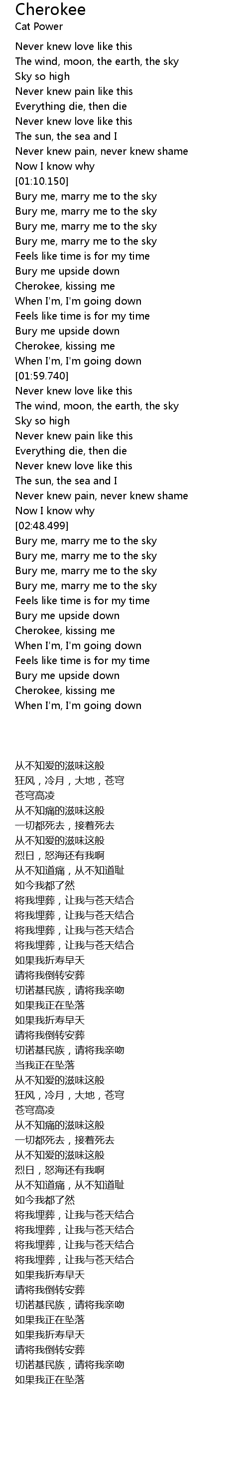 | [03:14.369] | 切诺基民族,请将我亲吻 |