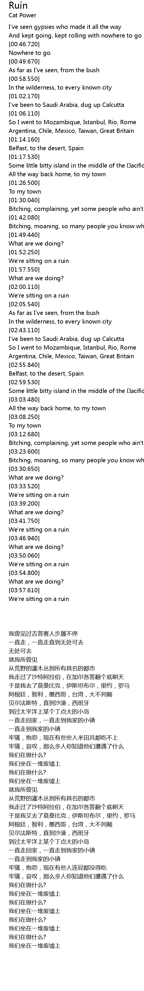 | [03:59.730] | 我们坐在一堆废墟上 |