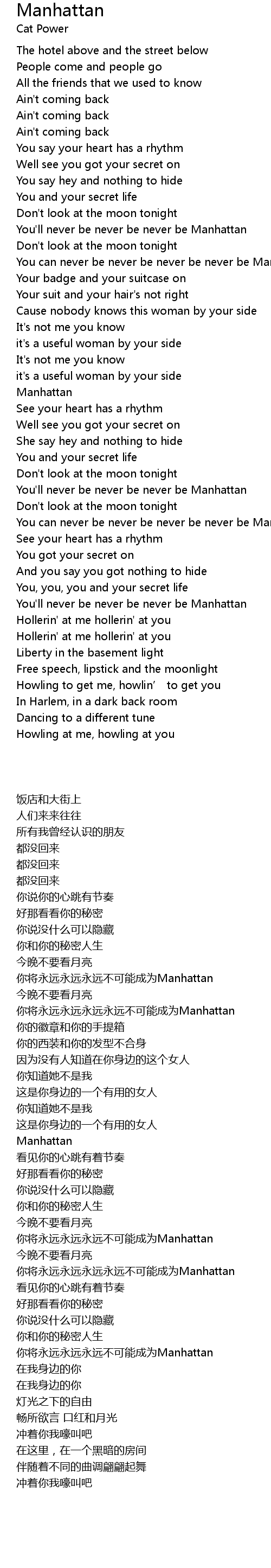 | [02:54.64] | 你将永远永远永远不可能成为Manhattan |