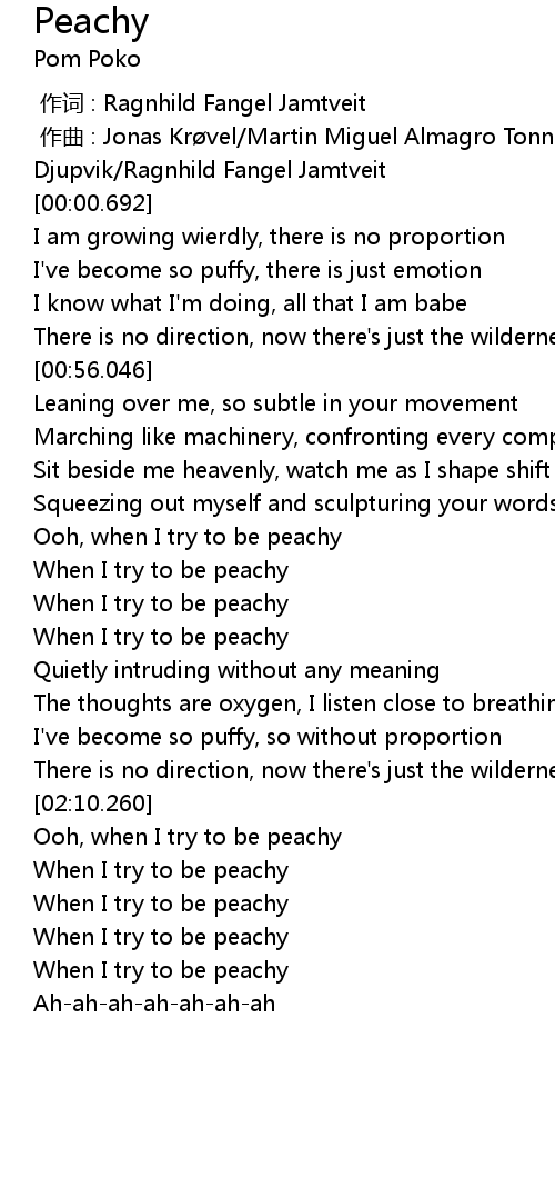 | [02:31.654] | Ooh, when I try to be peachy |