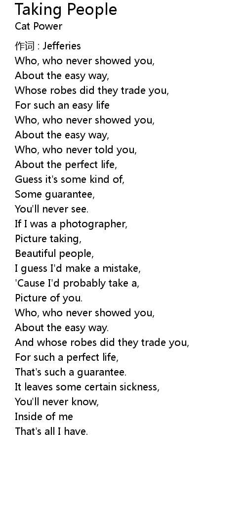 | 歌曲 | Taking People |