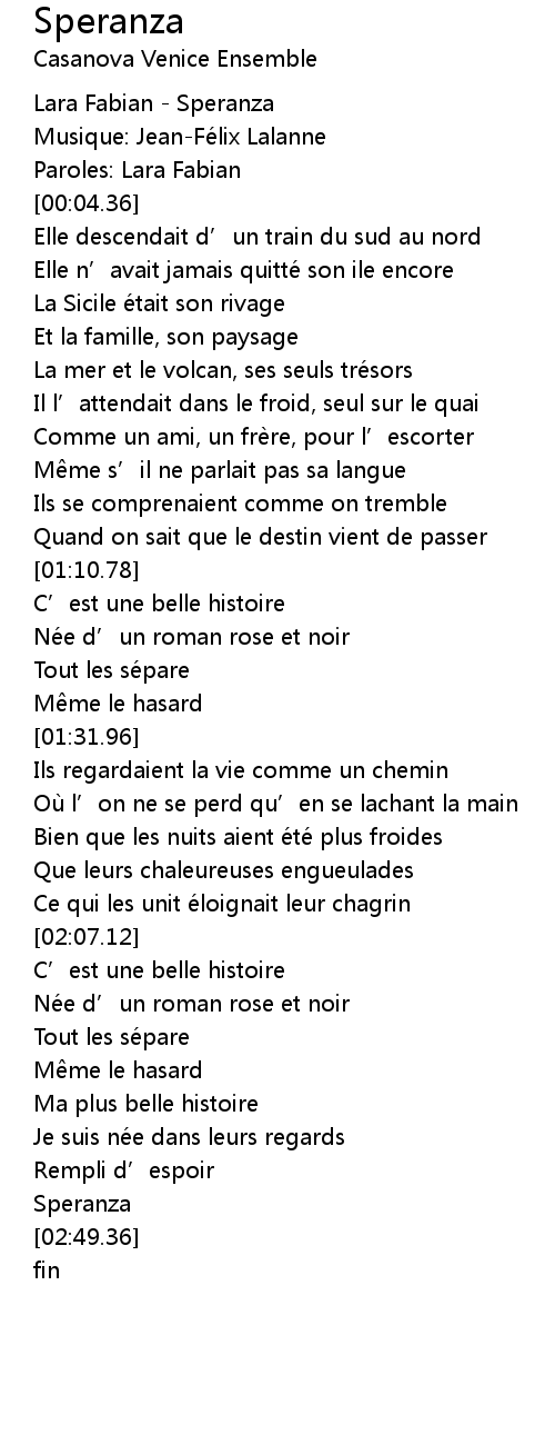 | [00:00.00] | Lara Fabian Speranza |