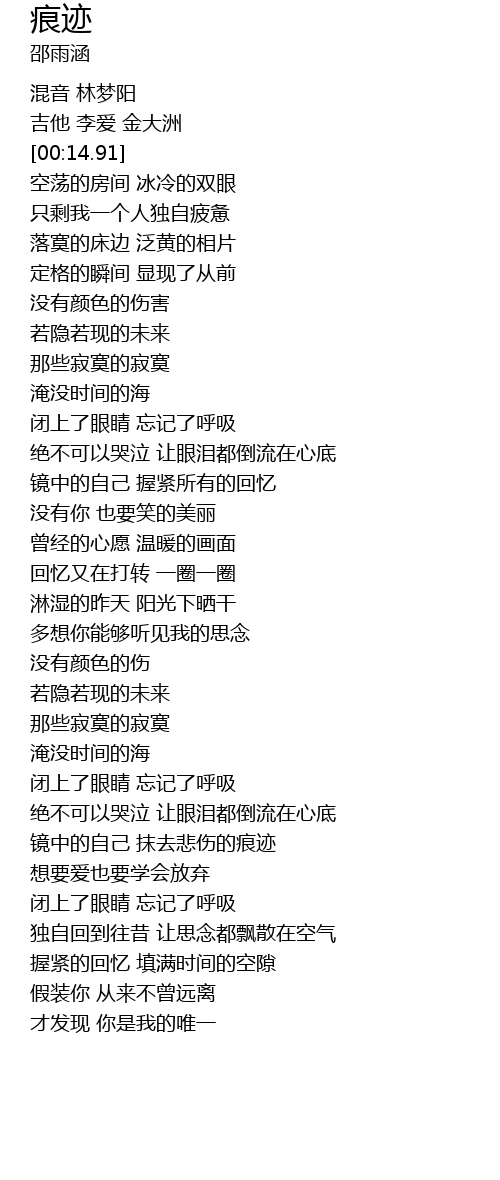 | [02:45.99] | 闭上了眼睛 忘记了呼吸 |