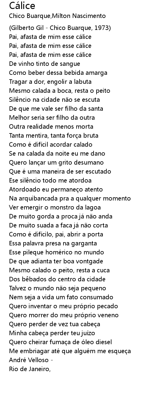 | Pai, afasta de mim esse cálice | |
