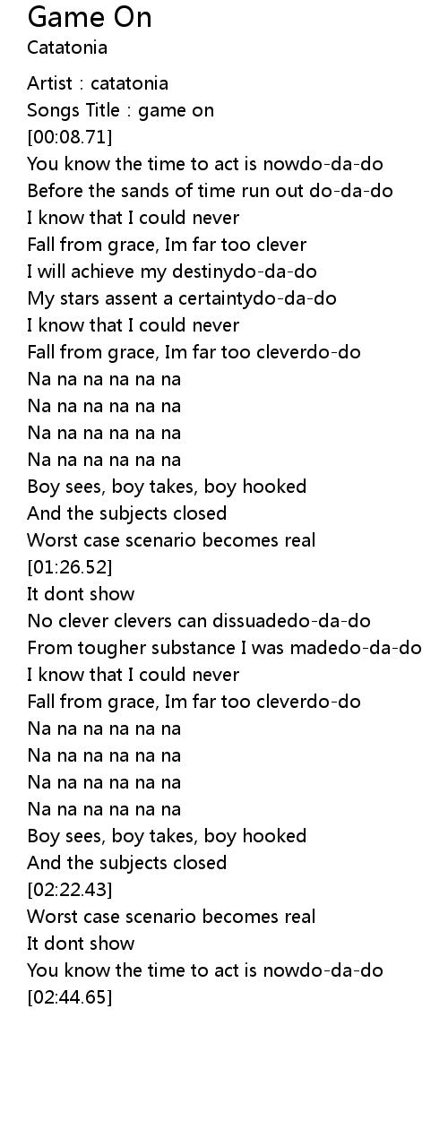 | [01:51.23] | Fall from grace, Im far too cleverdodo |