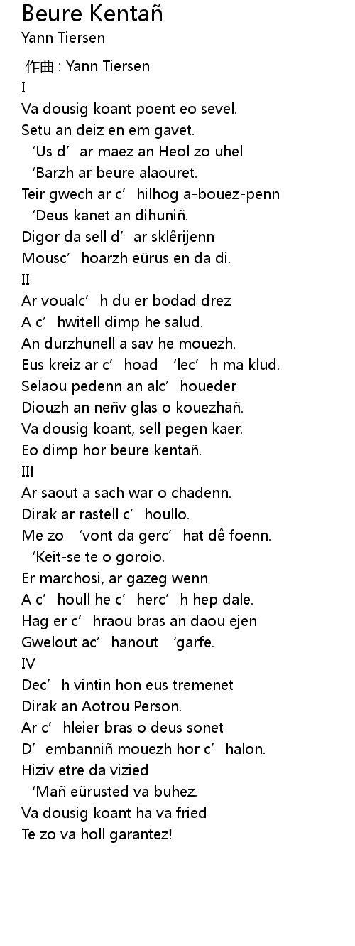 | 歌曲 | Beure Kentañ |