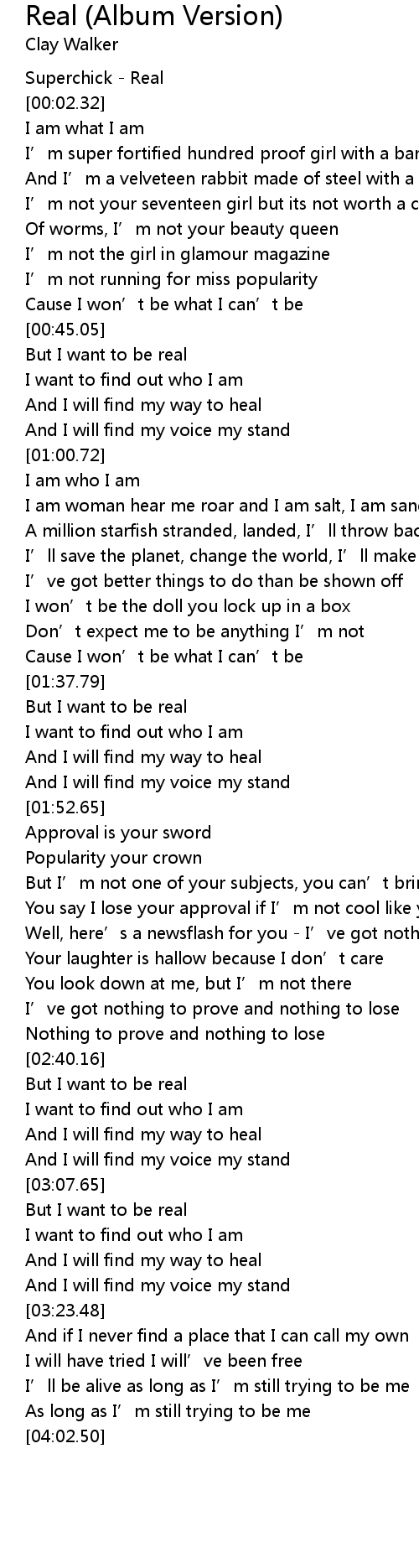 | [01:30.10] | Don’t expect me to be anything I’m not |