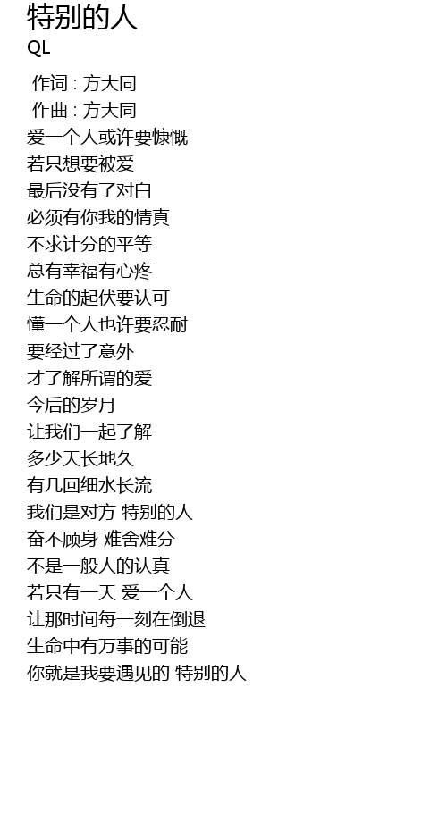 | [01:38.182] | 你就是我要遇见的 特别的人 |