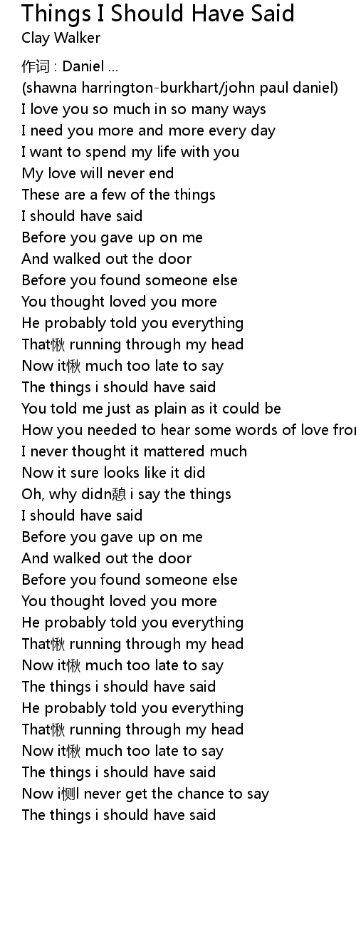 | 歌曲 | Things I Should Have Said |