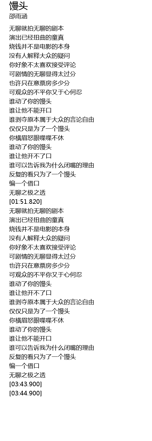 | [03:33.060] | 反复的看只为了一个馒头 |