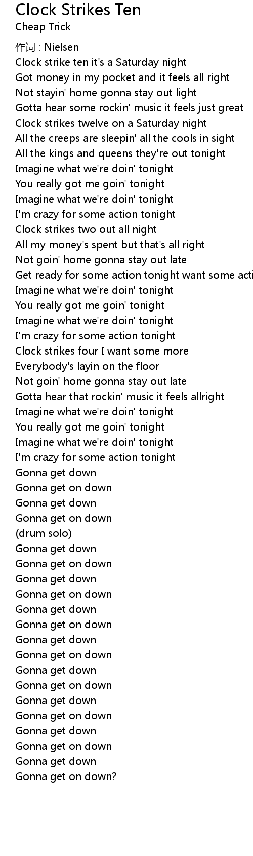 | Clock strike ten it' s a Saturday night | |