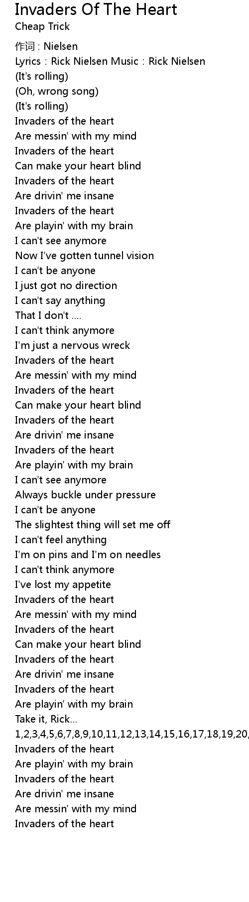 | 歌曲 | Invaders Of The Heart |
