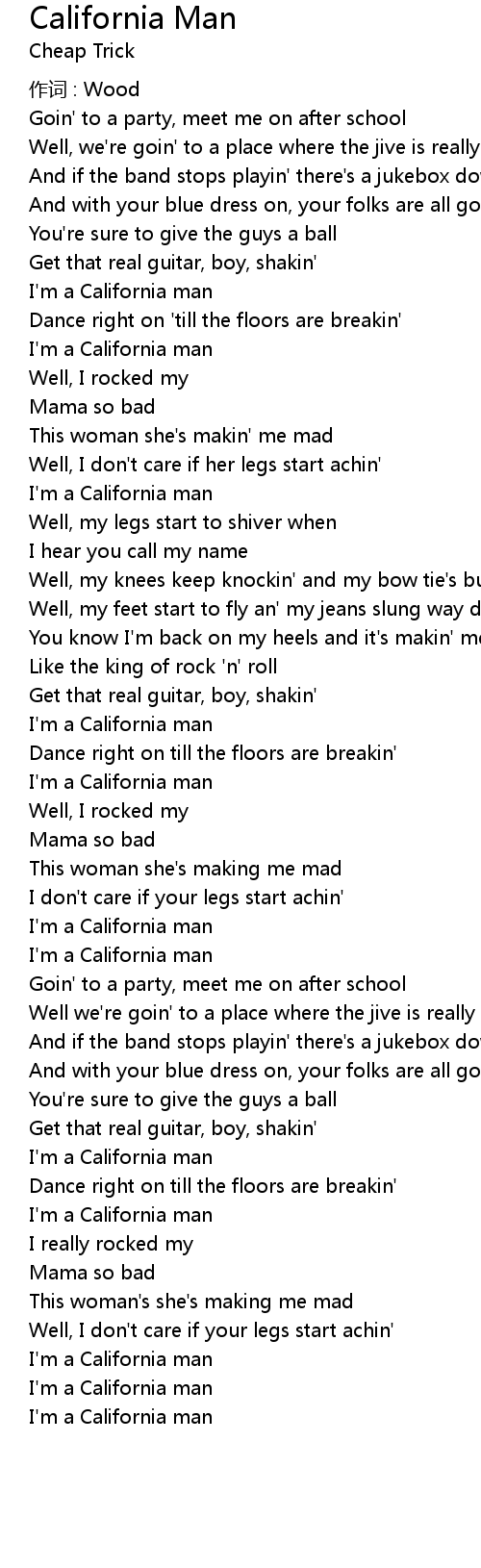 | 歌曲 | California Man |
