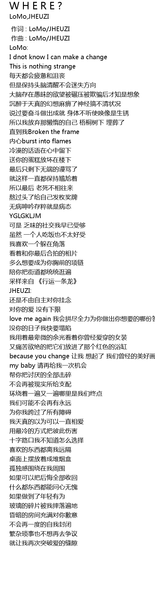 | [00:00.000] | 作词 : LoMo/JHEUZI |