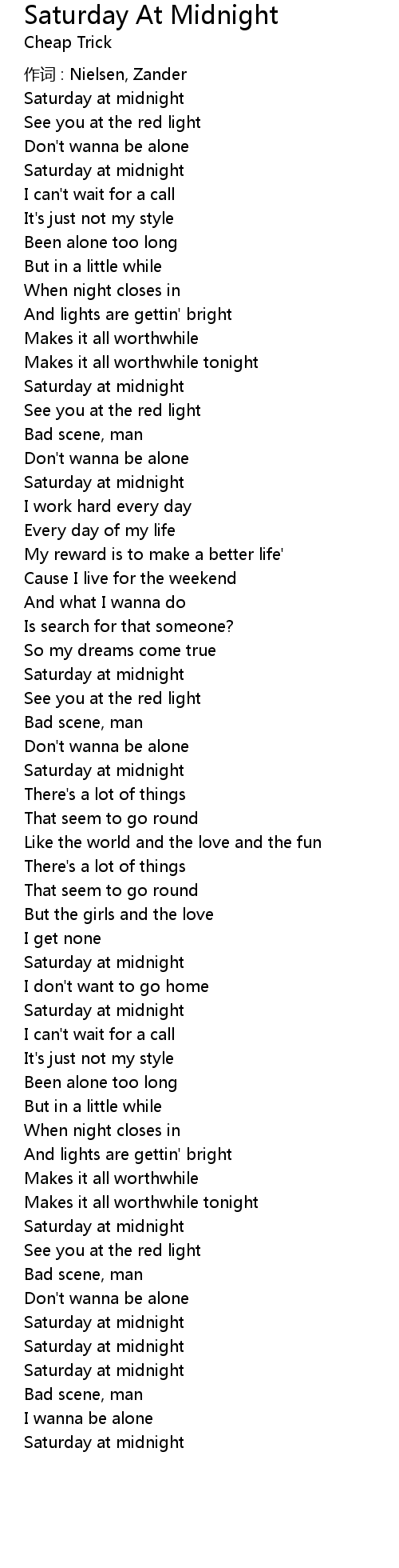 | 歌曲 | Saturday At Midnight |
