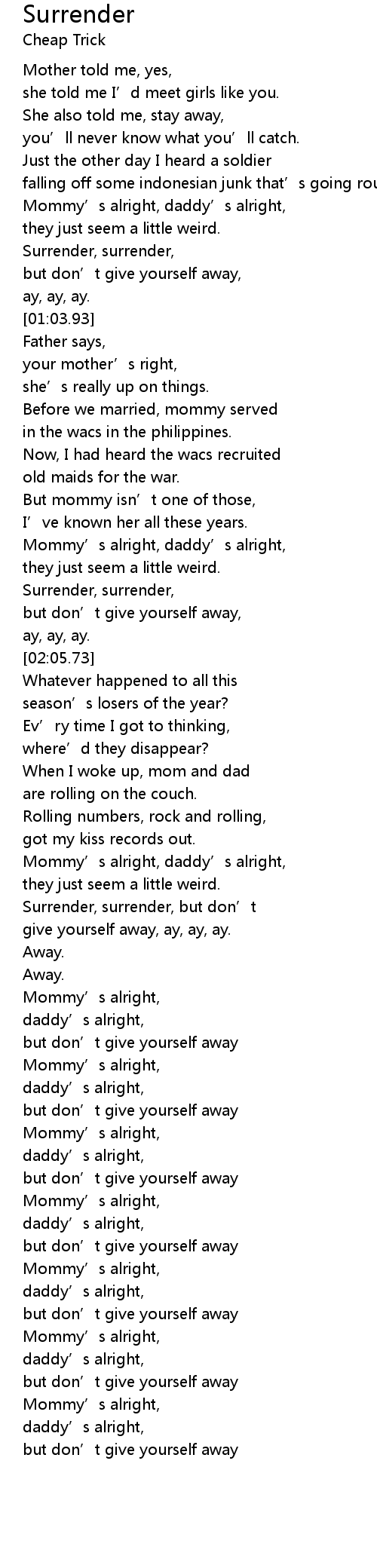 | [01:52.81] | Surrender, surrender, |