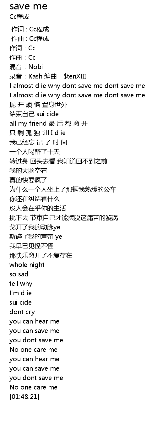 | [01:33.17] | you can save me |