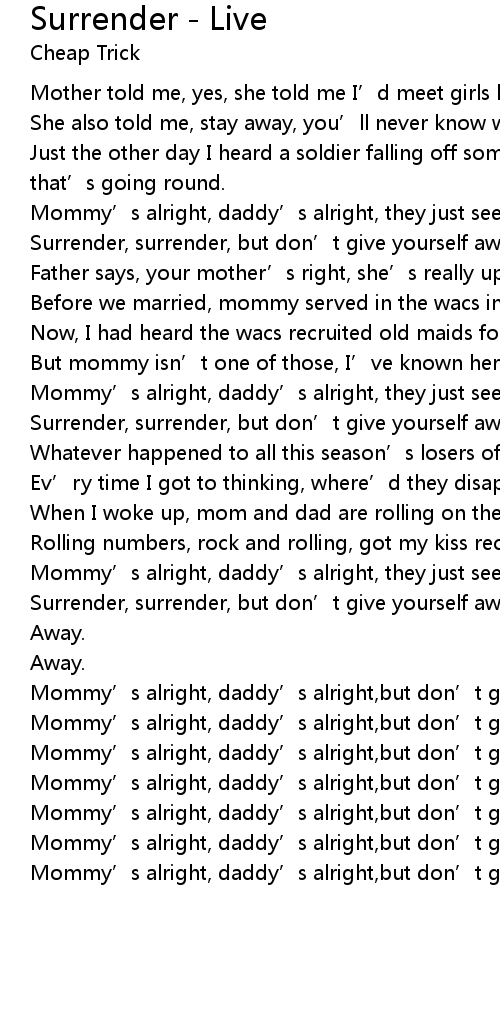 | [03:22.55] | Mommy' s alright, daddy' s alright, but don' t give yourself away |