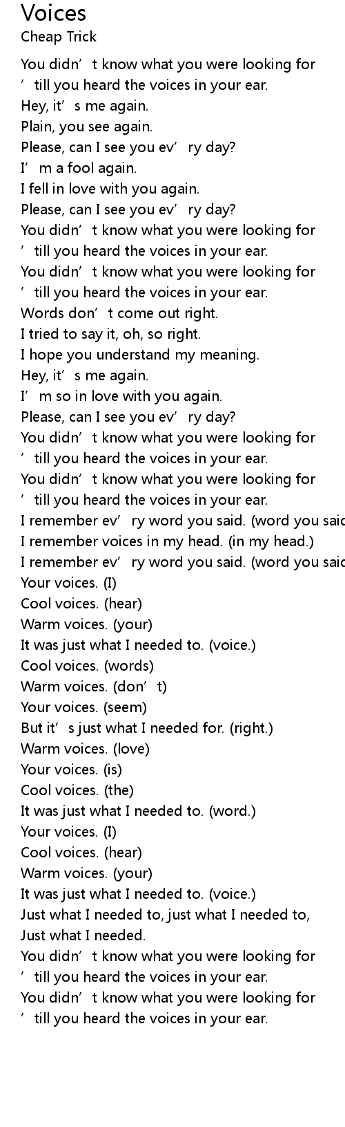 | [03:22.75] | Your voices. (is) |