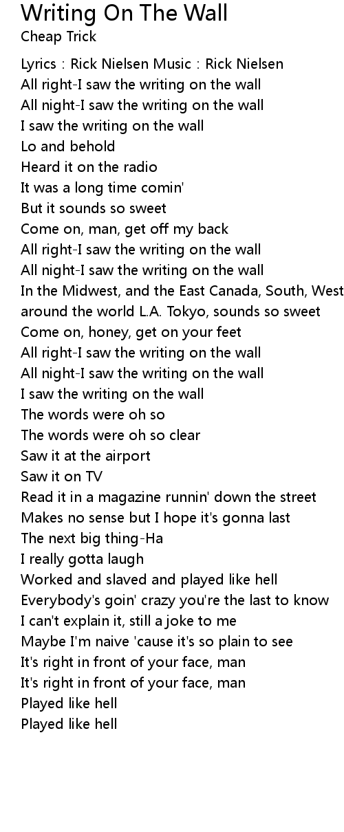 | All night-I saw the writing on the wall | |