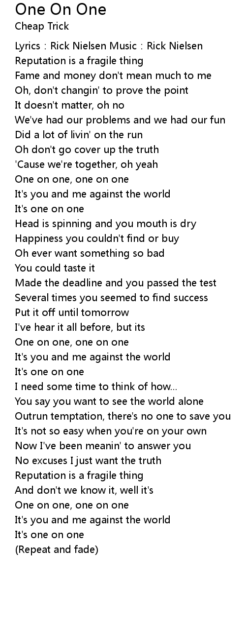 | Lyrics:Rick Nielsen Music:Rick Nielsen | |